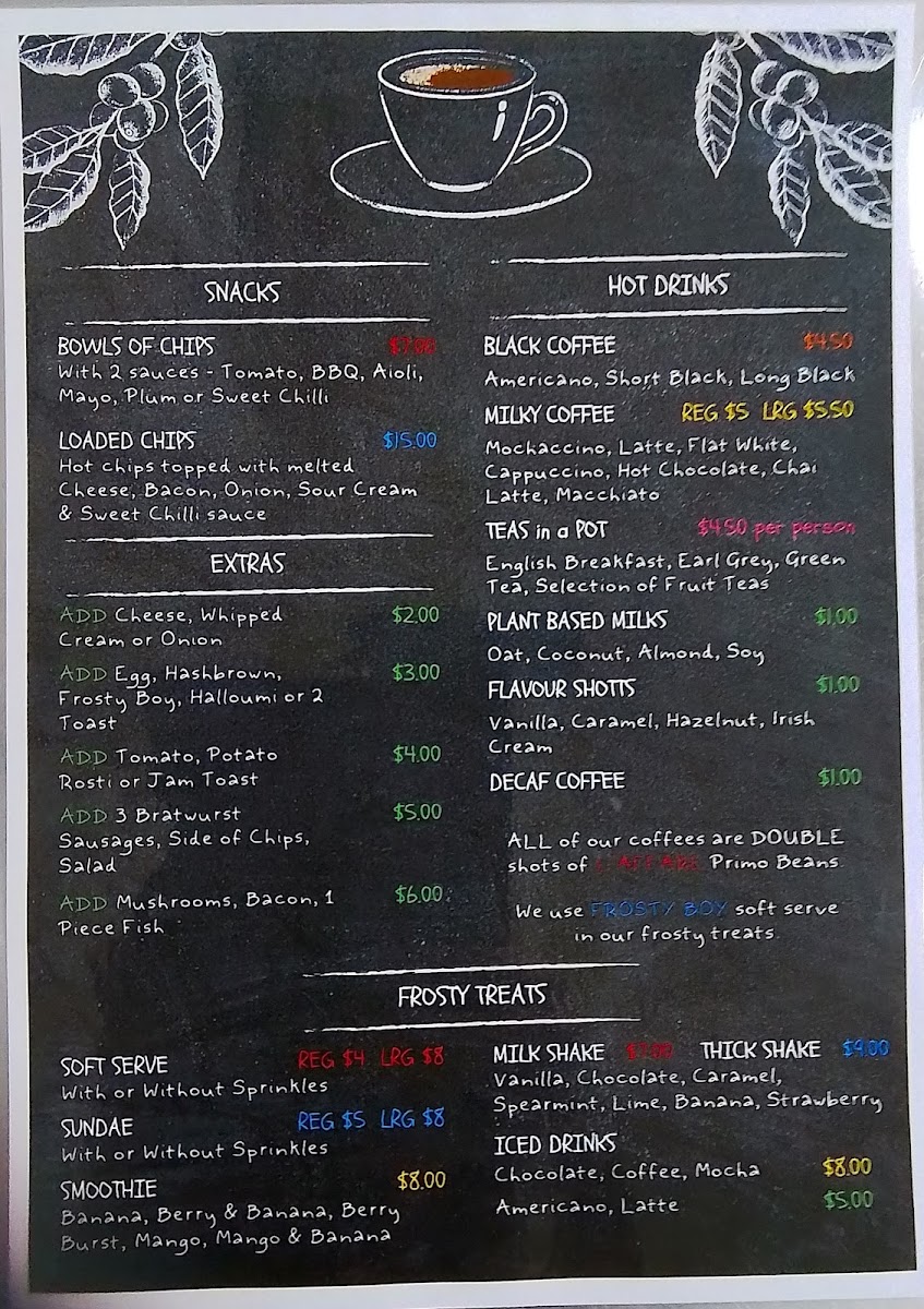 Welcome to Sugar & Salt Dannevirke, a gem nestled on High Street, where delightful flavors meet a warm, inviting atmosphere. This charming cafe is perfect for anyone looking to indulge in a variety of culinary treats. Their menu boasts an array of frosty delights, including soft serve ice cream, sundaes, and smoothies, all priced at NZ$8.00.
